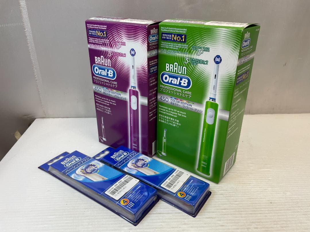 ブラウンオーラルb iO4 ラベンダーE 本体+ブラシ充電器専用替ブラシ2本入りイベントでいただきました。開封しておりますが、新品未使用です。開封し中身を確認後、箱にいれ保管しておりました。\rブラシヘッドはもともと本体に付いておりますが、未使用のものです。※ご不要であればお申し付けください。新品未開封の替ブラシ2本のセットになります。電源が入ること確認済みです。\r\r内容:歯ブラシ本体+ブラシブラシヘッド2本充電器\r箱に入れ、水濡れ、衝撃防止の梱包をし匿名配送で発送します。あくまで素人の手に渡ったことをご了承いただける方のみご購入ください。即購入可\rBluetooth機能搭載、4つのスマートモードを持つ電動歯ブラシ。\r商品スペックは公式サイトをご覧ください。\r- ブランド: Oral-B\r- モデル: iOシリーズ4\r- Bluetooth機能: あり\r- モード数: 4\r- モード名: デイリークリーン、センシティブ、スーパセンシティブ、ホワイトニング\r- 歯垢除去力: 99%アップ\r\r\rご購入後のキャンセル・返品等はお控えください。\rよろしくお願いします。